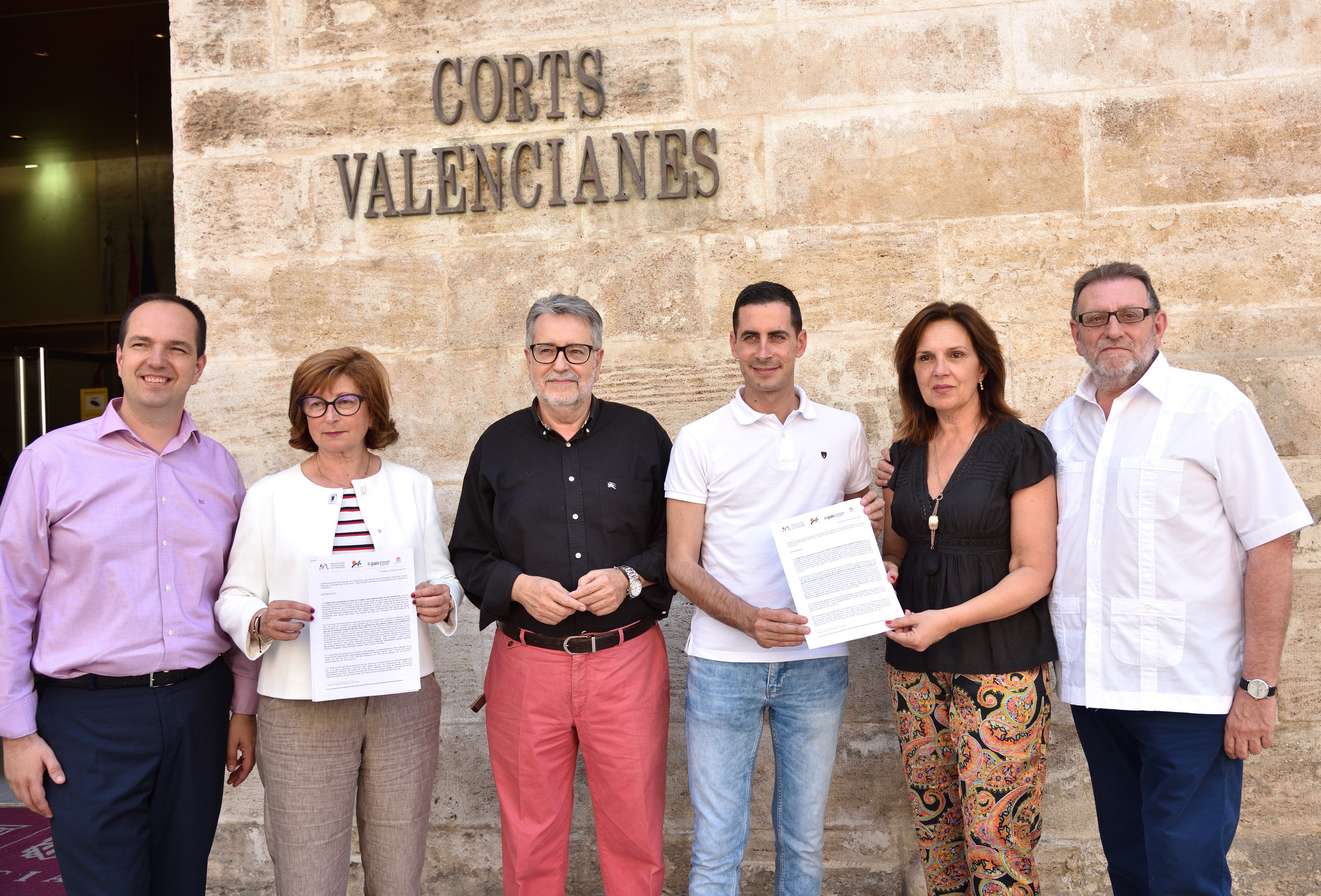 El presidente de la Mancomunitat de l'Horta Sud, Carlos Fernández Bielsa, acompañado por Elvira García, alcaldesa de Alaquàs; Guillermo Luján, de Aldaia; Jesús Ros, de Torrent y Ramón Marí, de Albal, han entregado a las Cortes Valencianas en manifiesto a favor de la actual configuración de l'Horta Sud. El escrito lo recibió la vicepresidenta de la cámara autonómica, Carmen Martínez quien, a su vez, es alcaldesa de Quart de Poblet.