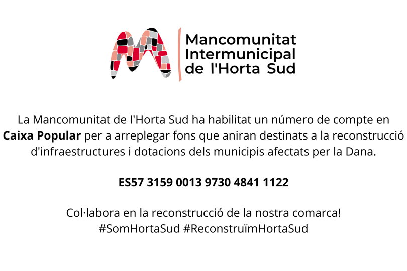La Mancomunitat de l'Horta Sud reorganitza tots els seus departaments per a prestar serveis per la DANA
