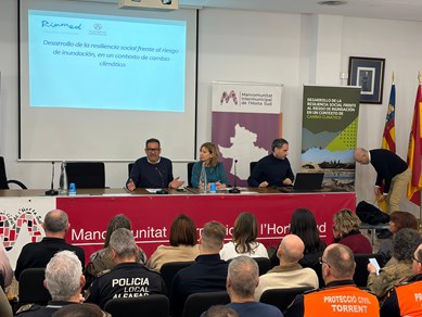 Torrent, 10 de marzo de 2026.- La Mancomunitat de l’Horta Sud ha acogido, este martes, 10 de marzo, una jornada para presentar el proyecto piloto de formación a la ciudadanía en materia de inundaciones, que ha impulsado el grupo de investigación Riumed, vinculado a la Facultad de Geografía de la Universitat de València, y que lidera la científica Ana Camarasa.